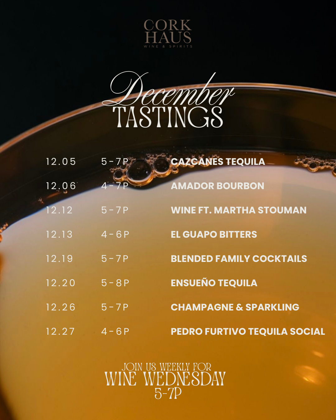 Our Tasting lineup is here! Complimentary Tastings all December long - All curated with love. Can’t wait to see you! • • • No RSVP required! See you soon!Button