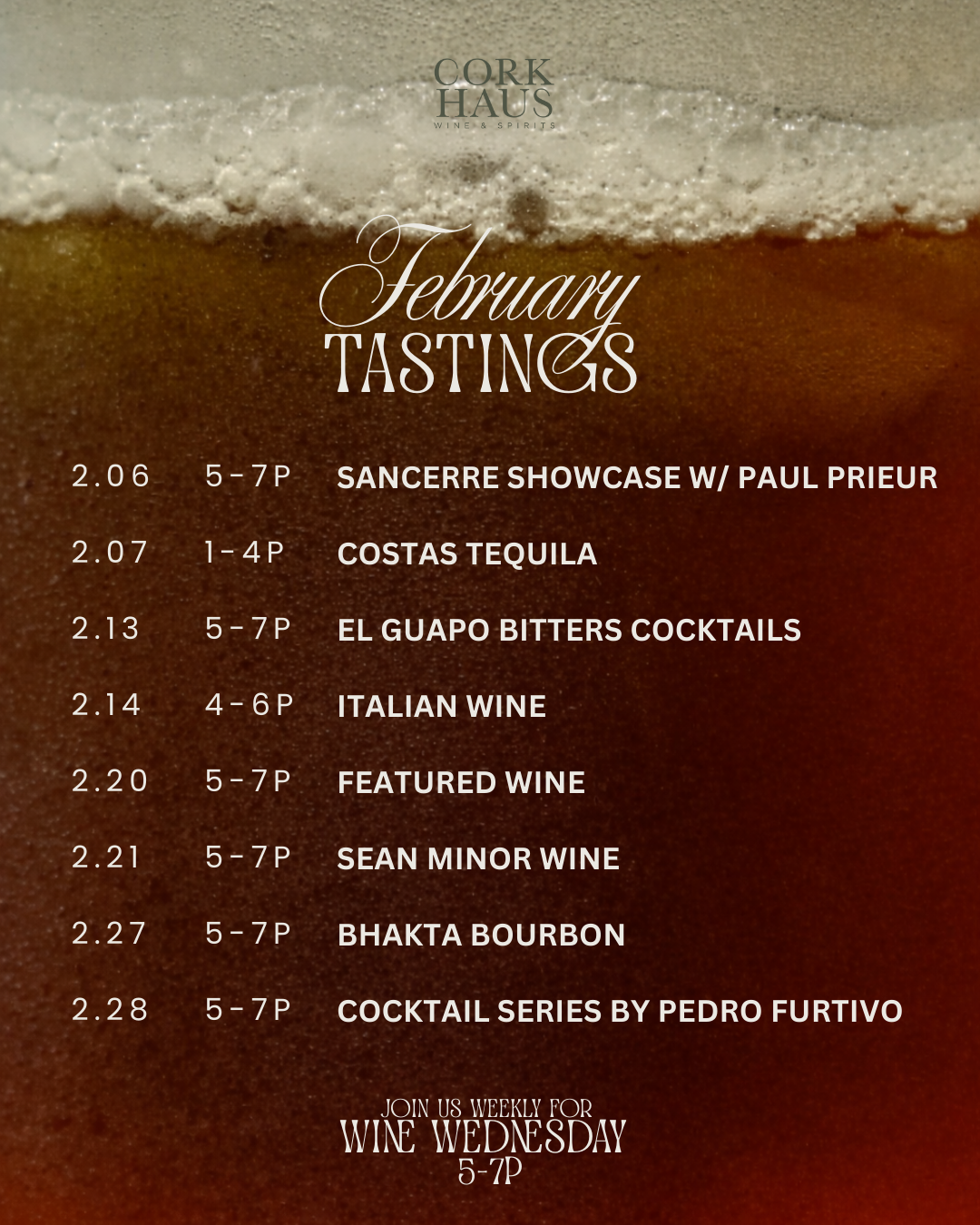 February is pouring beautifully 🍷🥃🍾 all complimentary tastings! From Sancerre to bourbon to cocktails, join us all month long for curated tastings you won’t want to miss. No RSVP required!Button